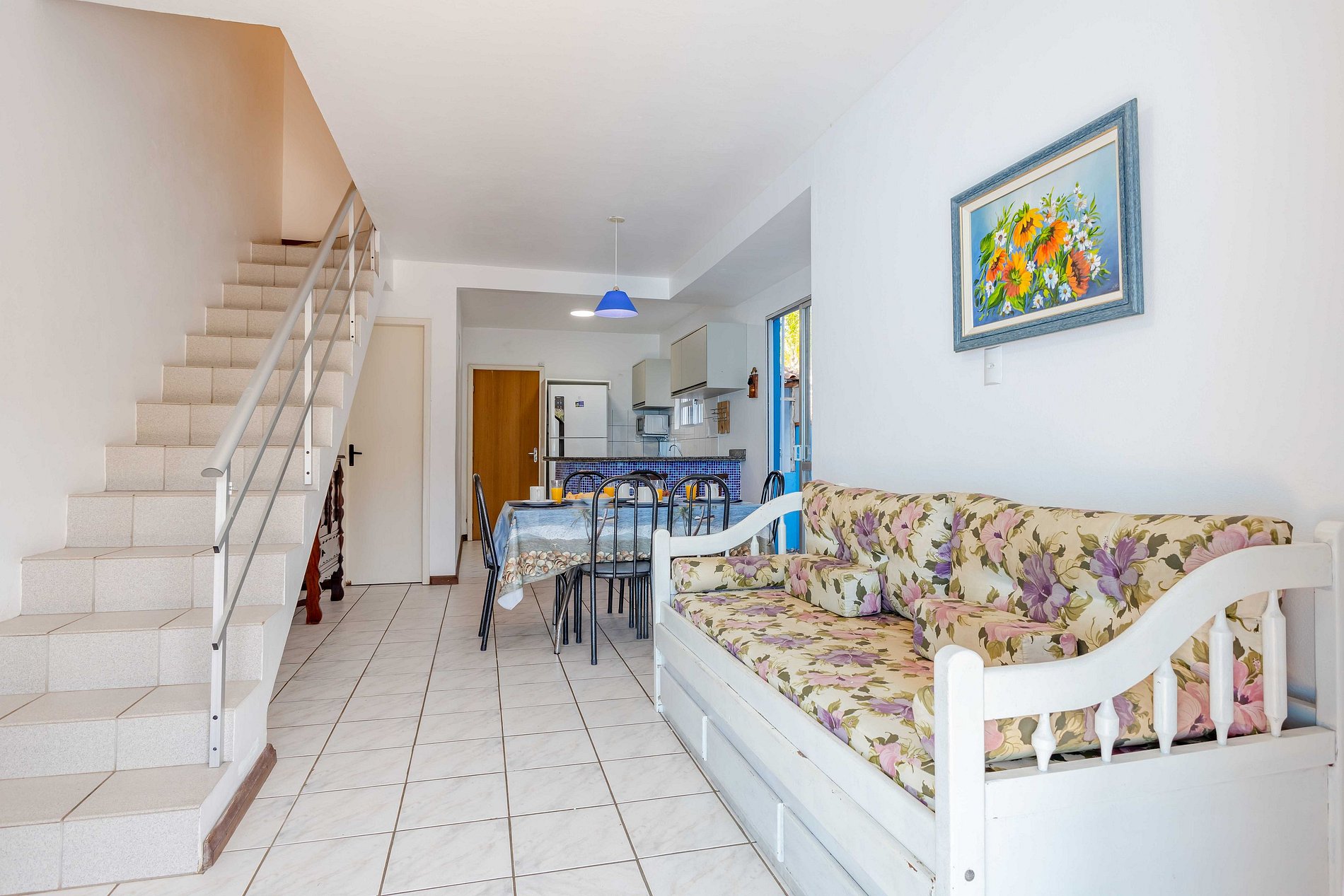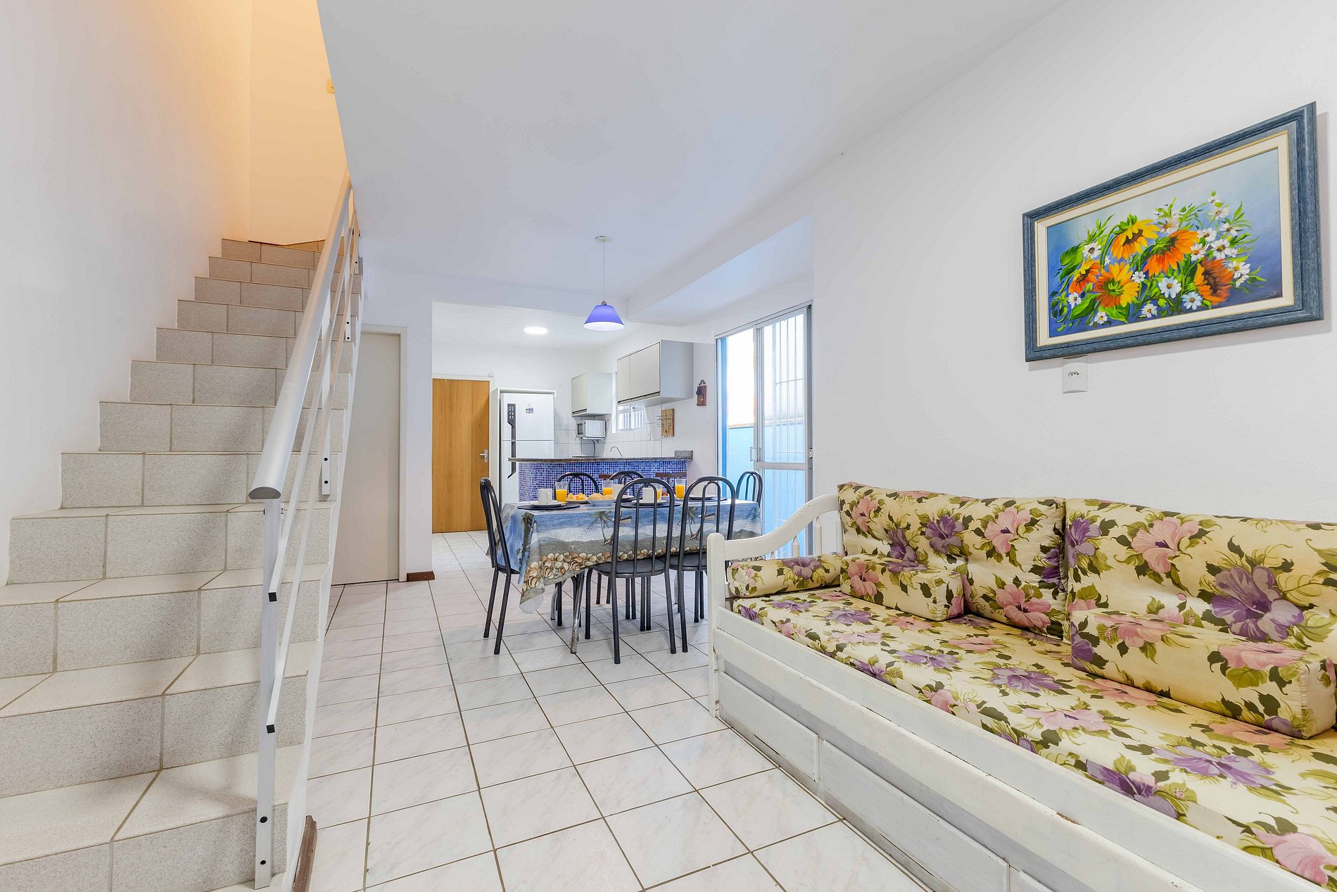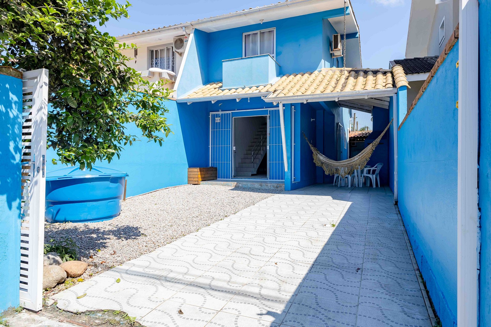 O sobrado na rua Periquito acomoda até 8 pessoas (capacidade máxima incluindo crianças de qualquer idade) em 02 dormitórios com camas de casal e dois colchão de solteiro no piso superioro e no piso térreo 01 dormitório com cama de casal. Os dormitórios possuem ar-condicionado. O imóvel possui cozinha completa e equipada, área de serviço, sala de estar e jantar, 02 banheiros, pátio e estacionamento para 02 veículos. (Solicite inventário completo para nossa equipe).