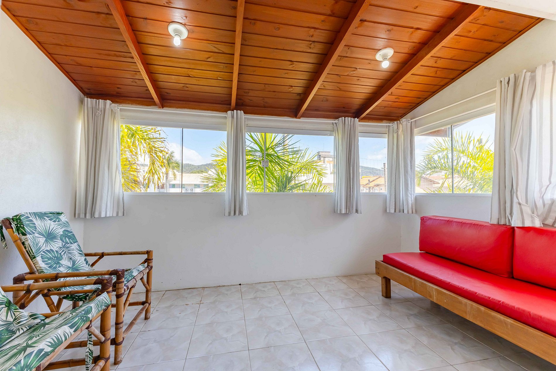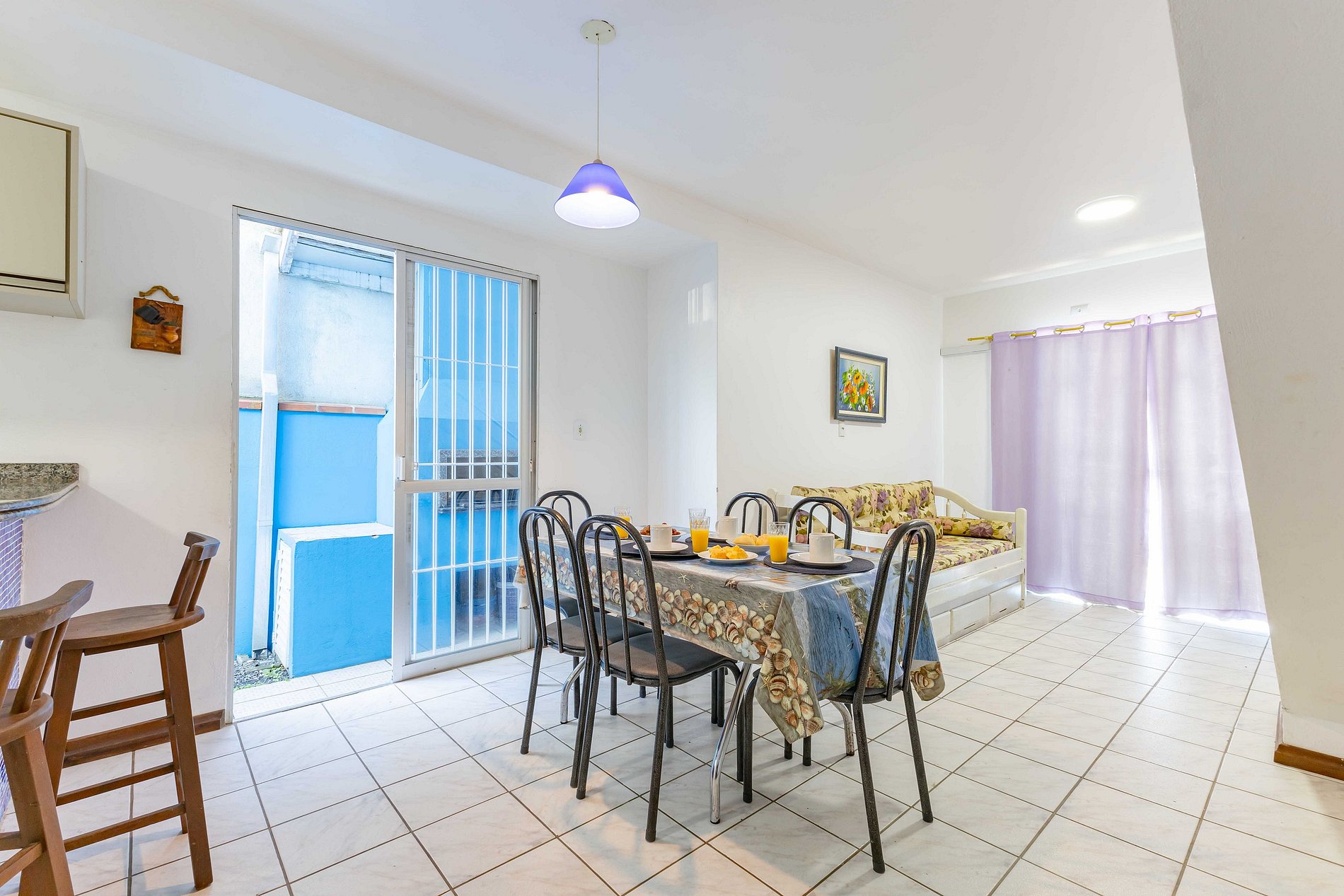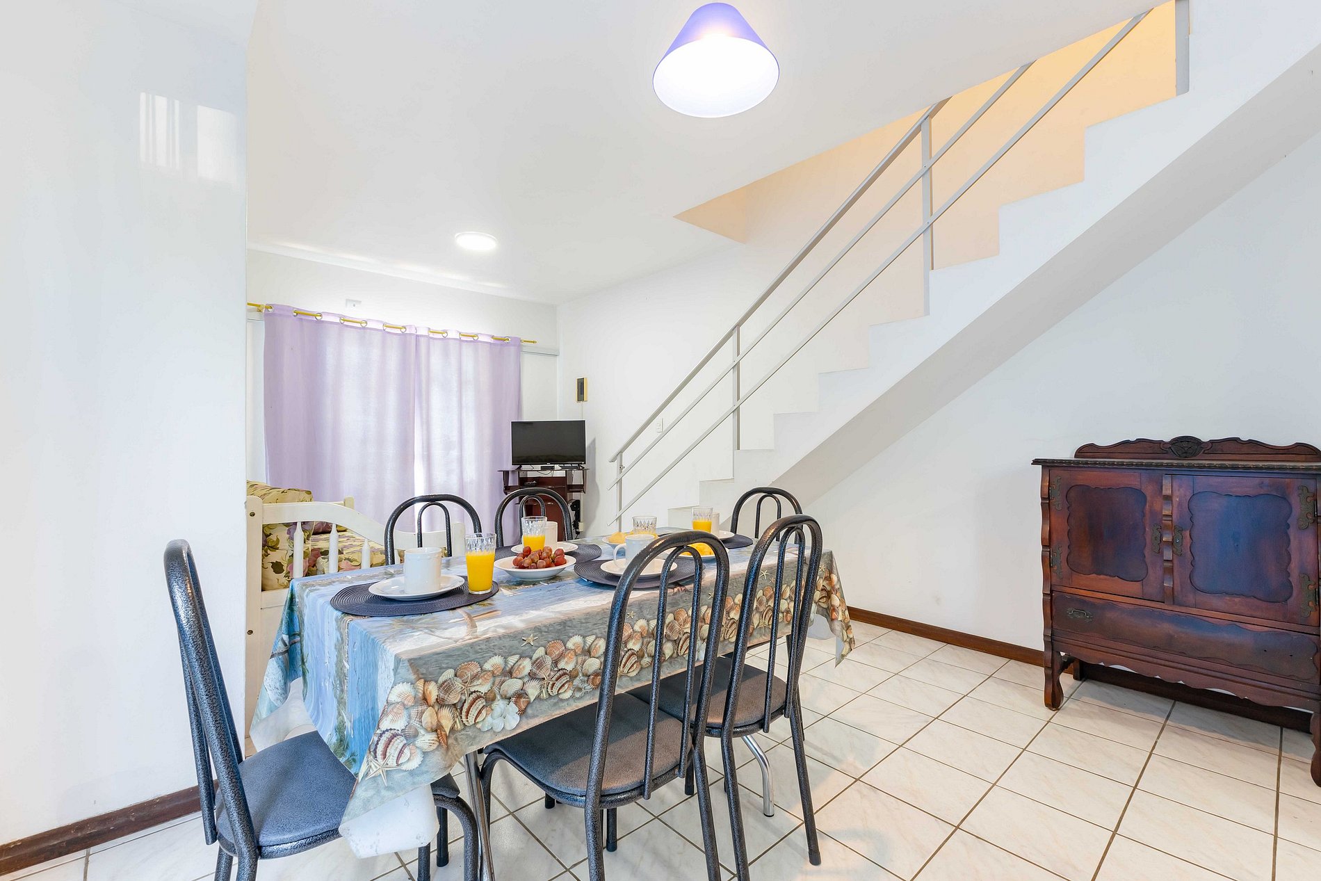 O sobrado na rua Periquito acomoda até 8 pessoas (capacidade máxima incluindo crianças de qualquer idade) em 02 dormitórios com camas de casal e dois colchão de solteiro no piso superioro e no piso térreo 01 dormitório com cama de casal. Os dormitórios possuem ar-condicionado. O imóvel possui cozinha completa e equipada, área de serviço, sala de estar e jantar, 02 banheiros, pátio e estacionamento para 02 veículos. (Solicite inventário completo para nossa equipe).